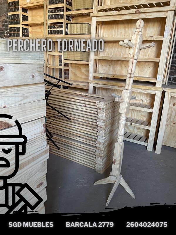 Perchero torneado de madera maciza de pino